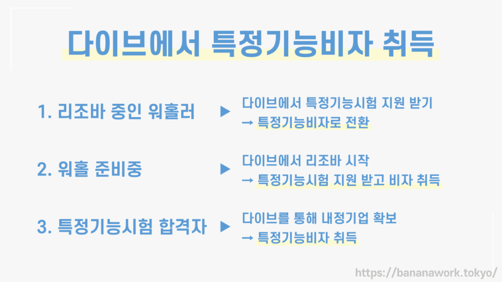 - 일본 특정기능 비자를 취득하기 위해서는 분야별 평가시험에 합격해야 함